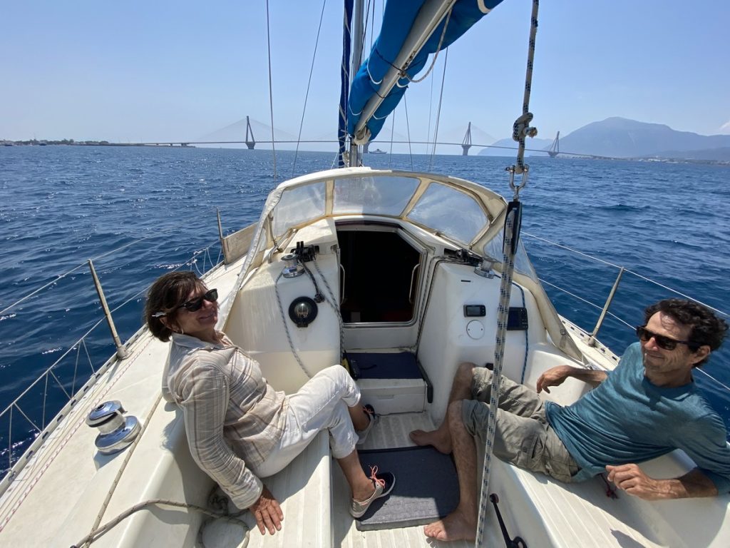 Après 15 ans de voyage en Grèce, « La Sittelle » attend sagement à Oropos qu’on vienne la chercher pour la ramener vers Port Saint Louis du Rhône. Claude et Ingrid ne peuvent faire le voyage cette fois-ci : c’est Nadiège et Pierre qui s’en chargeront, aidés ici par quelques bons matelots.
