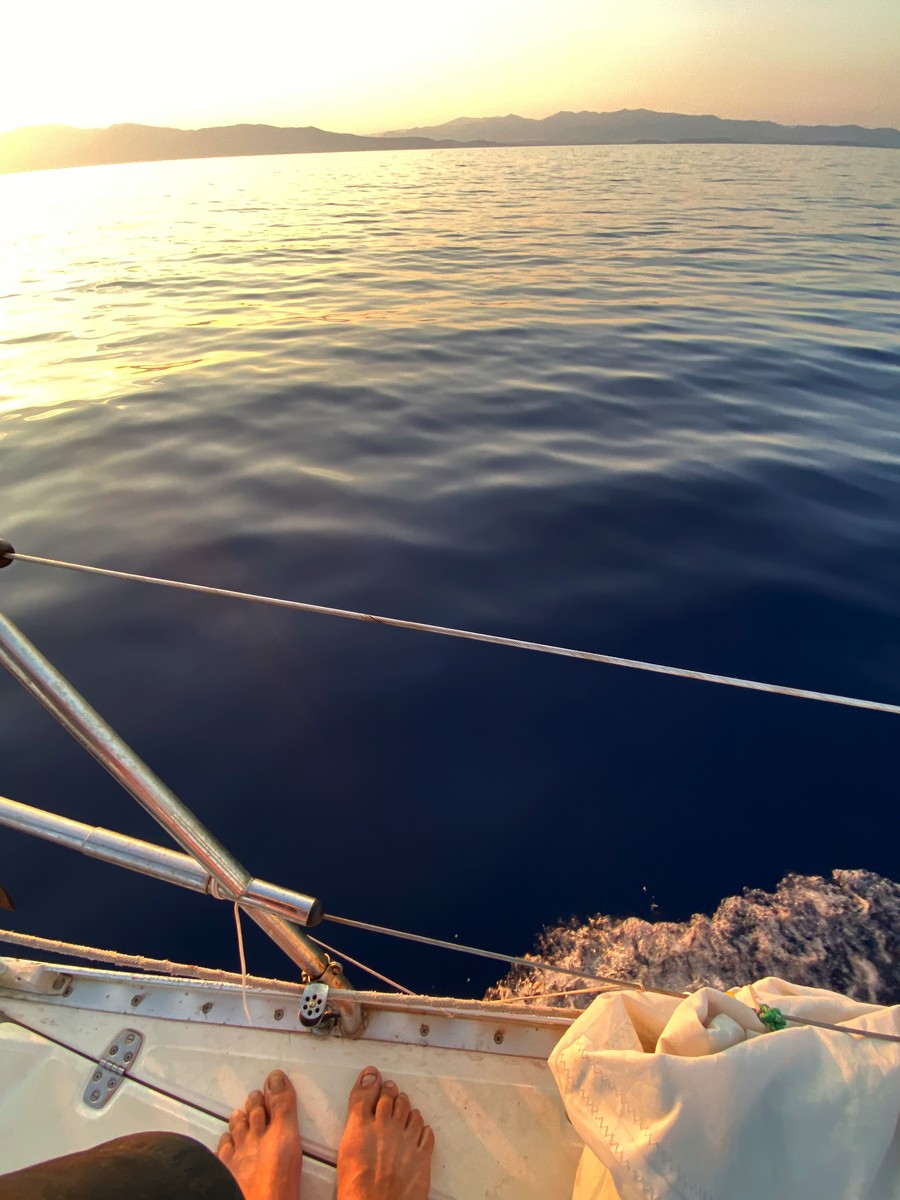 On relève quille et safran, on s’amarre et on grignote sur la plage au soleil couchant.