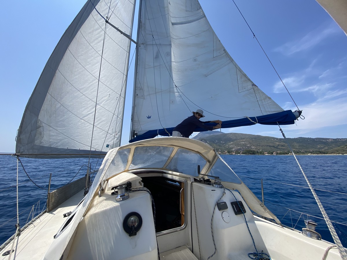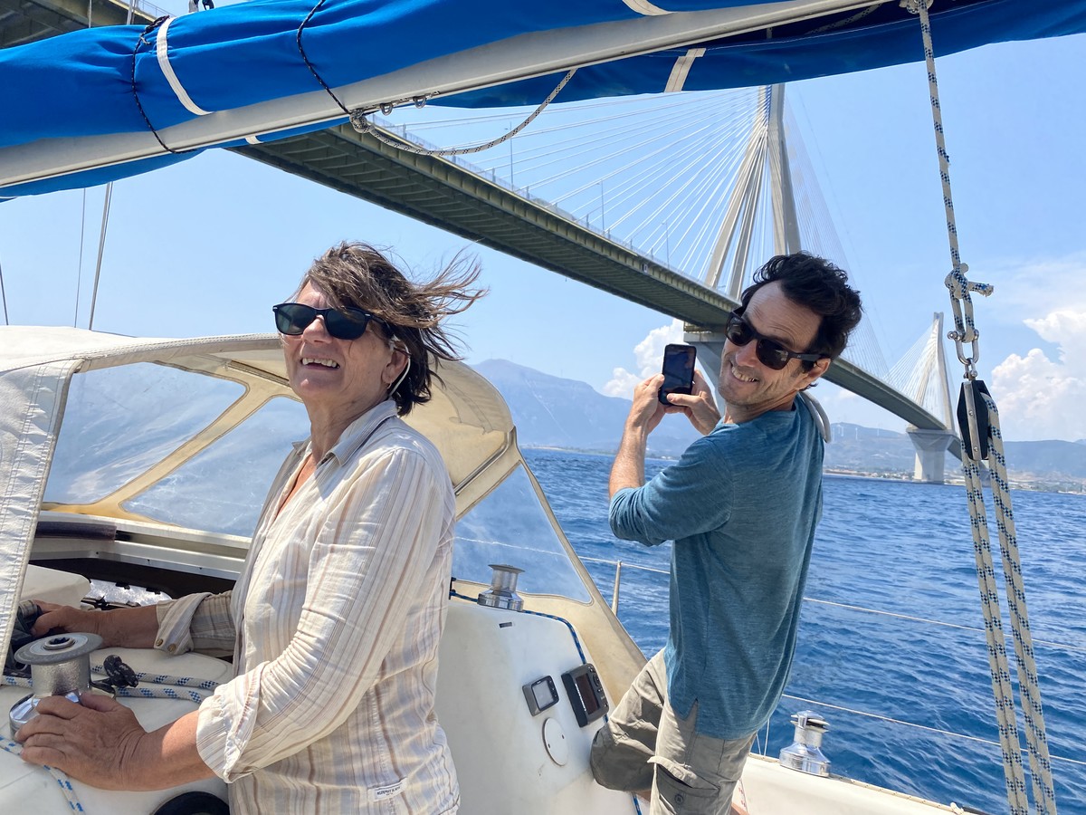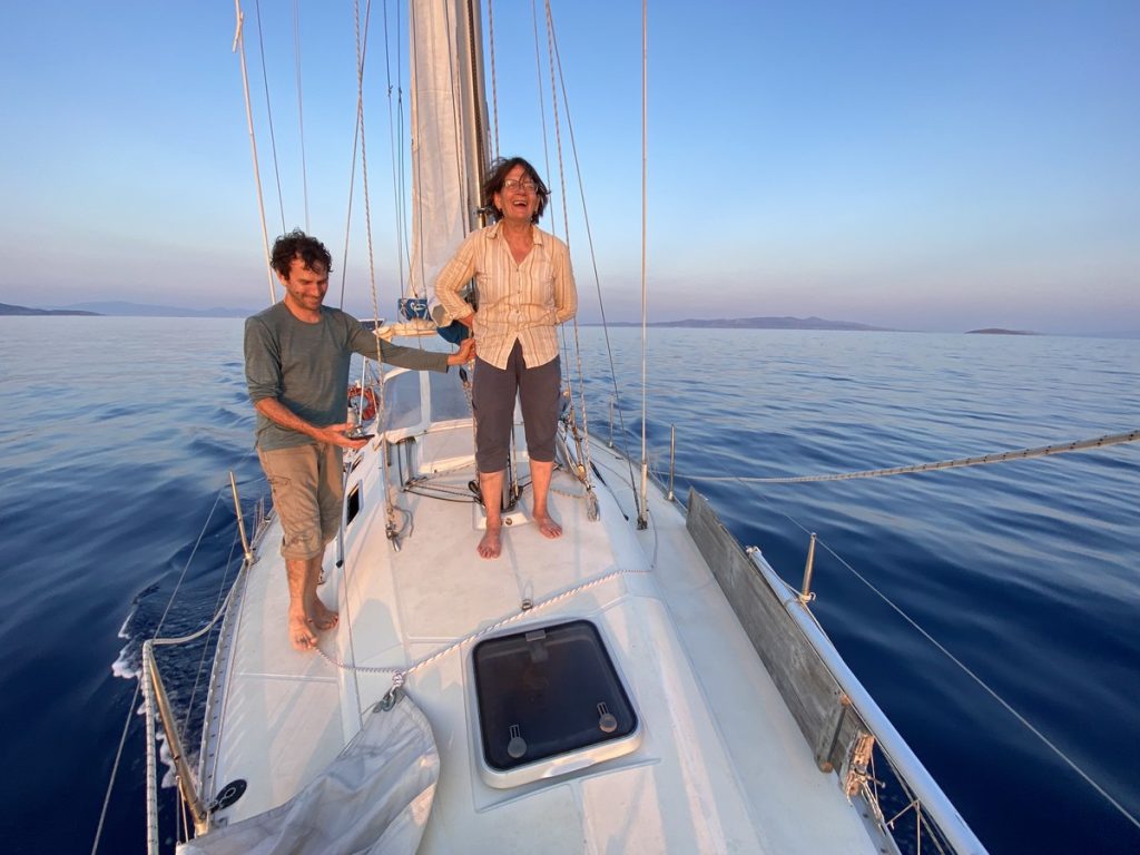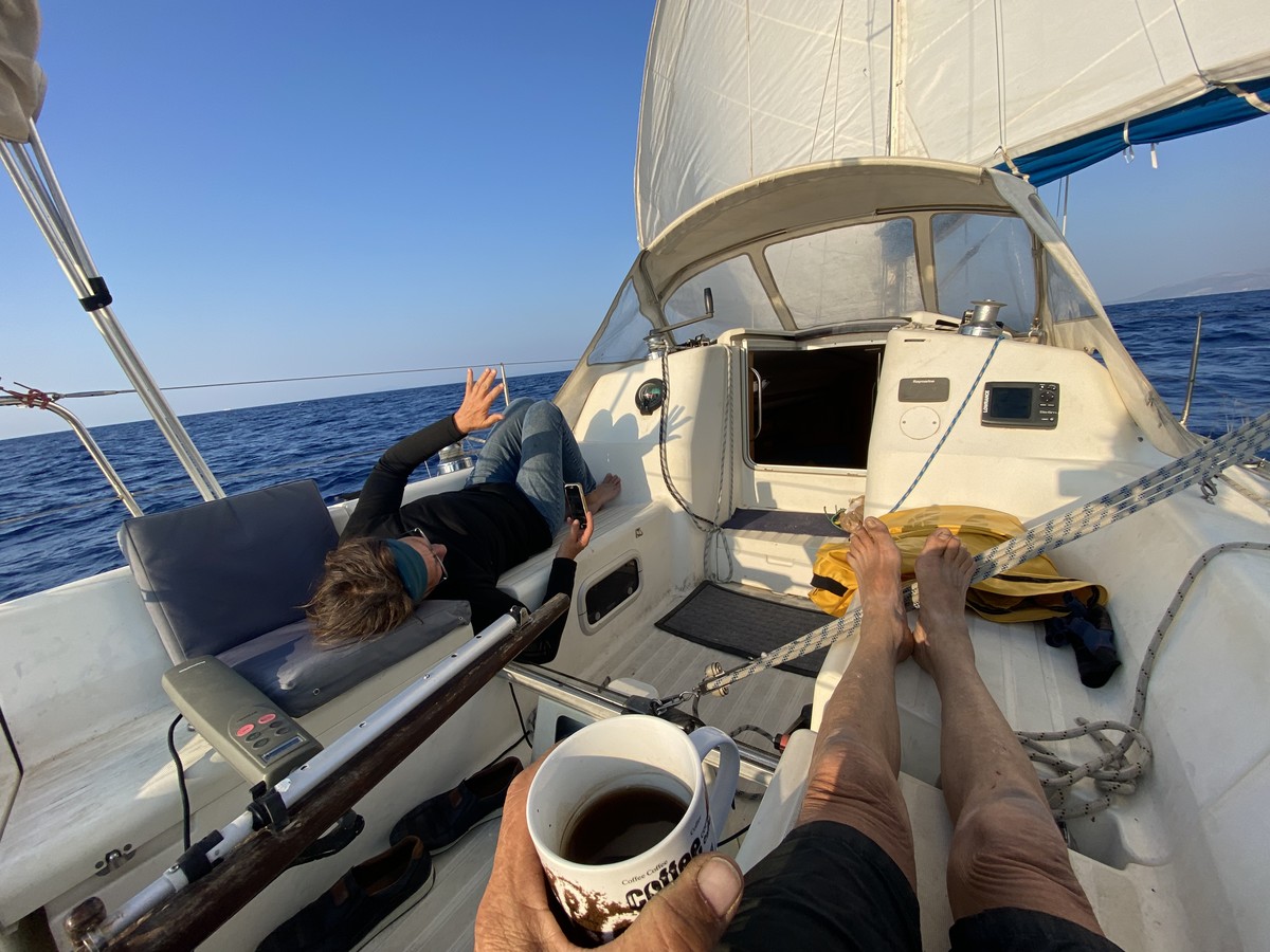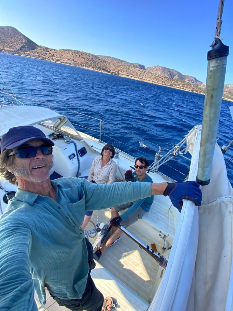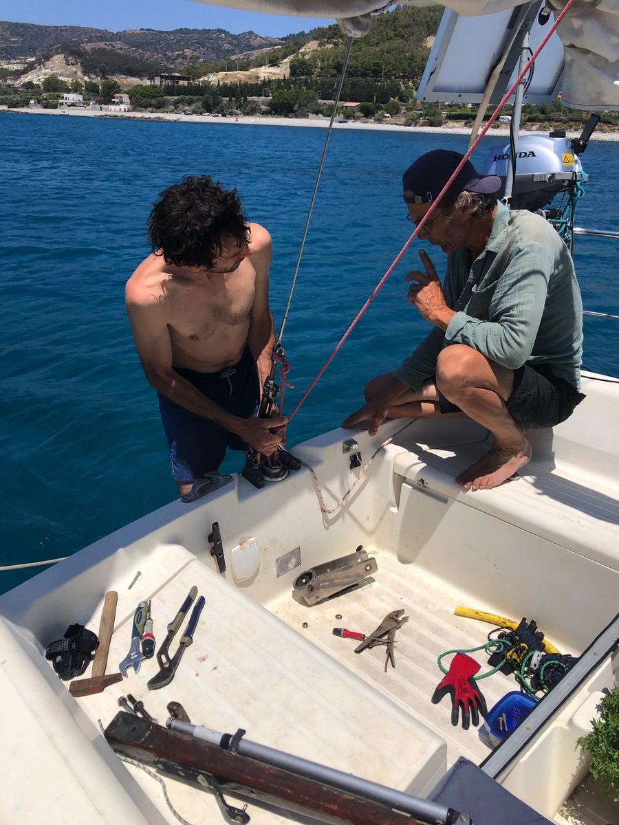 Après 15 ans de voyage en Grèce, « La Sittelle » attend sagement à Oropos qu’on vienne la chercher pour la ramener vers Port Saint Louis du Rhône. Claude et Ingrid ne peuvent faire le voyage cette fois-ci : c’est Nadiège et Pierre qui s’en chargeront, aidés ici par quelques bons matelots.