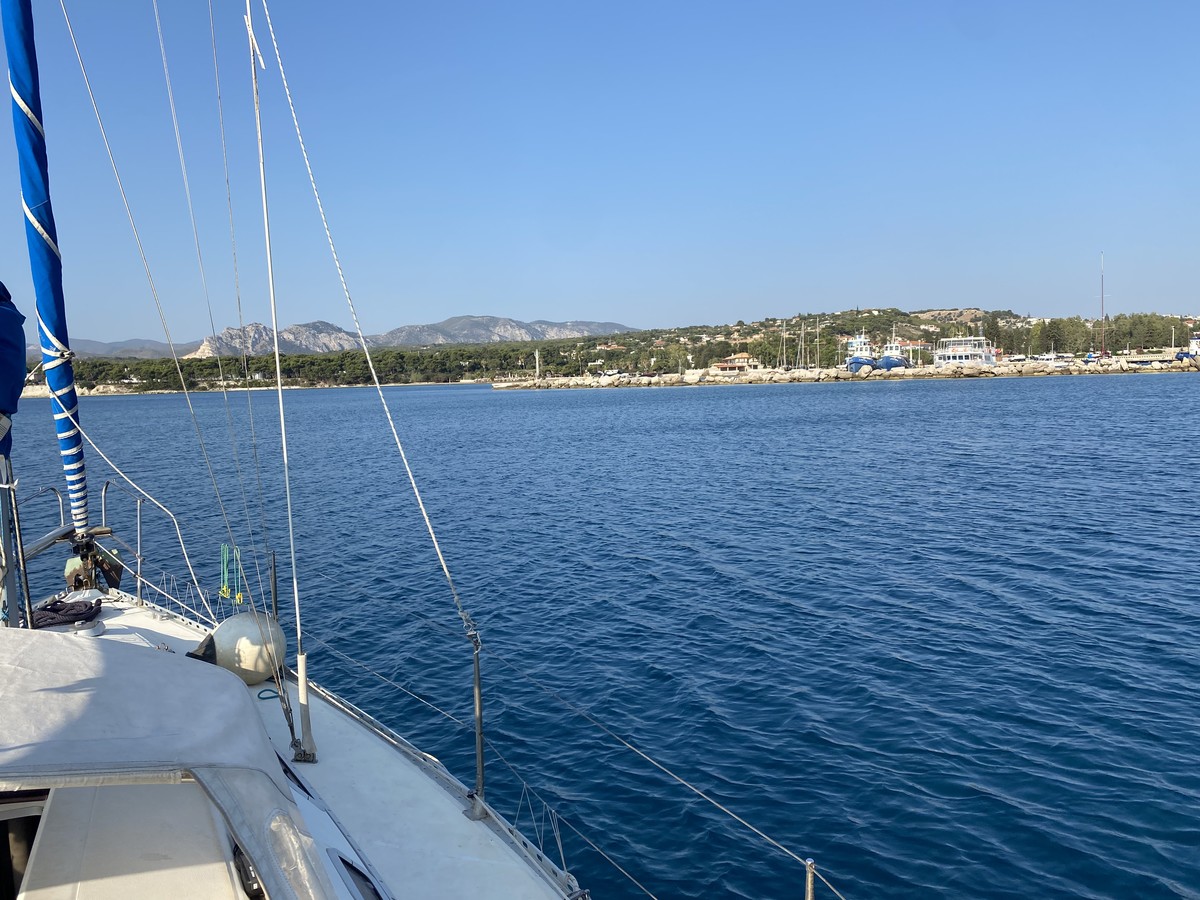 On traversera avec les premiers bord vers Erétria ou nous mouillons pour chercher provisions et gasoil, argent liquide.