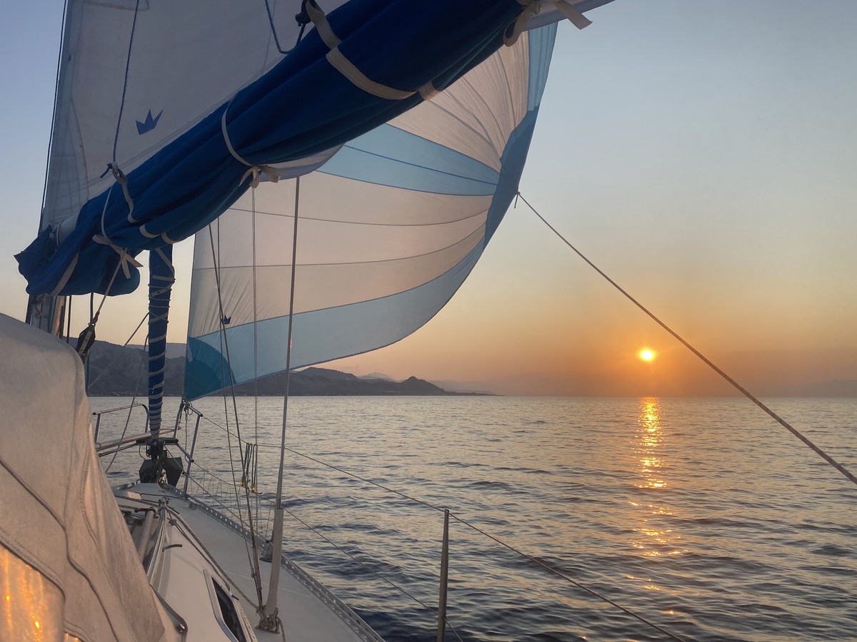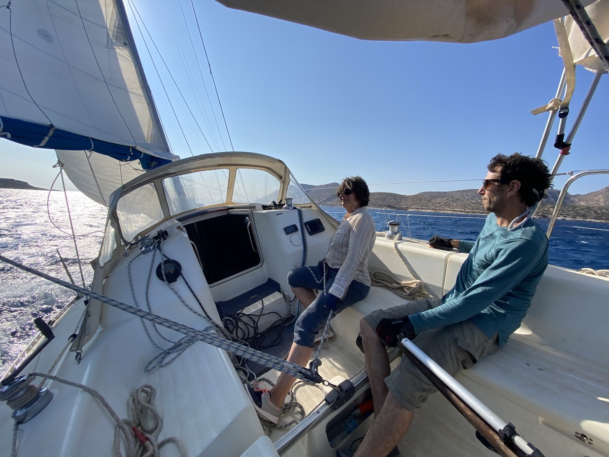 Puis nous partons par petit vent de travers pour Agii Apostoli et son mini port.